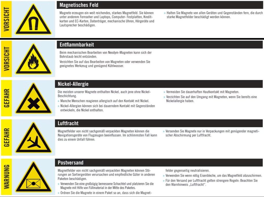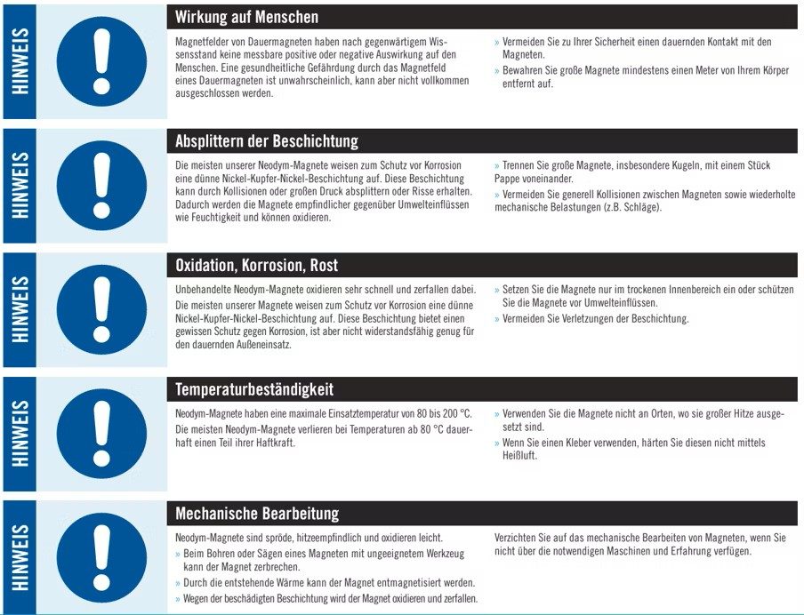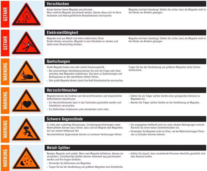 4. Magnetische Störungen: Neodym-Magnete erzeugen starke Magnetfelder. Halten Sie das Produkt von elektronischen Geräten, Datenträgern (z. B. Festplatten, Kreditkarten) und medizinischen Implantaten (z. B. Herzschrittmachern) fern, um Störungen zu vermeiden.