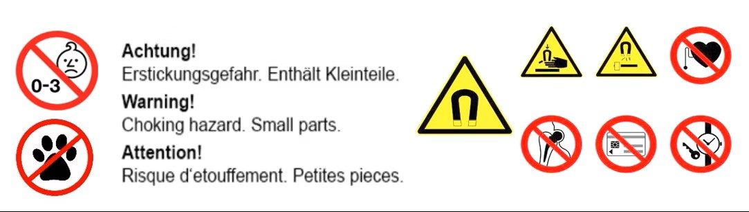 1. Verschluckungsgefahr: Die Magnete sind klein und können von Kindern oder Haustieren verschluckt werden. Verschluckte Magnete können im Körper ernsthafte Verletzungen verursachen. Bei Verdacht auf Verschlucken suchen Sie umgehend ärztliche Hilfe auf.